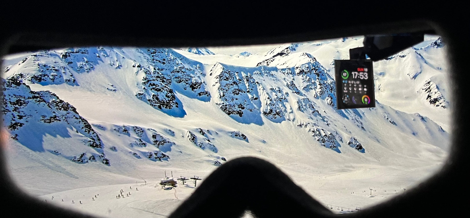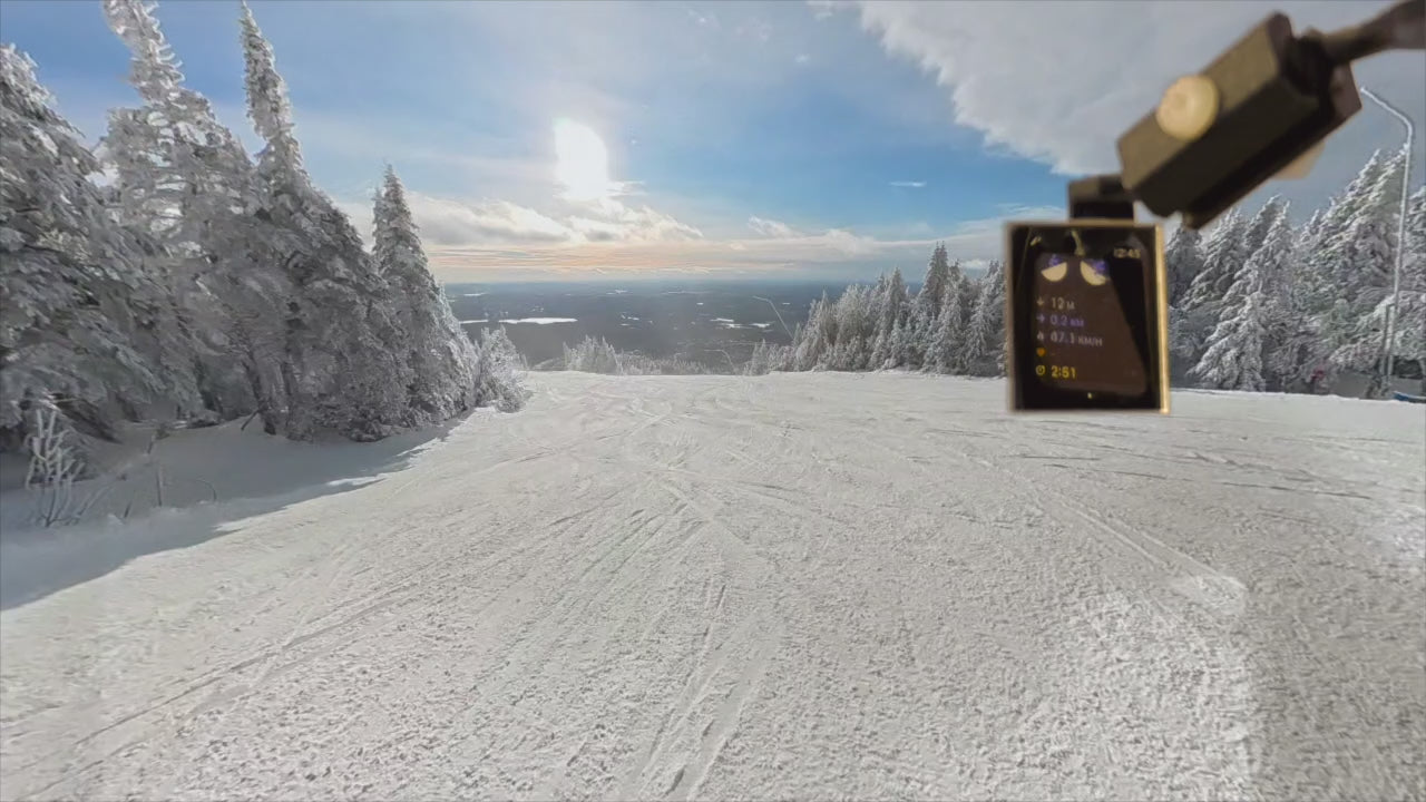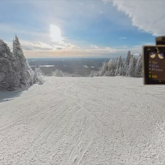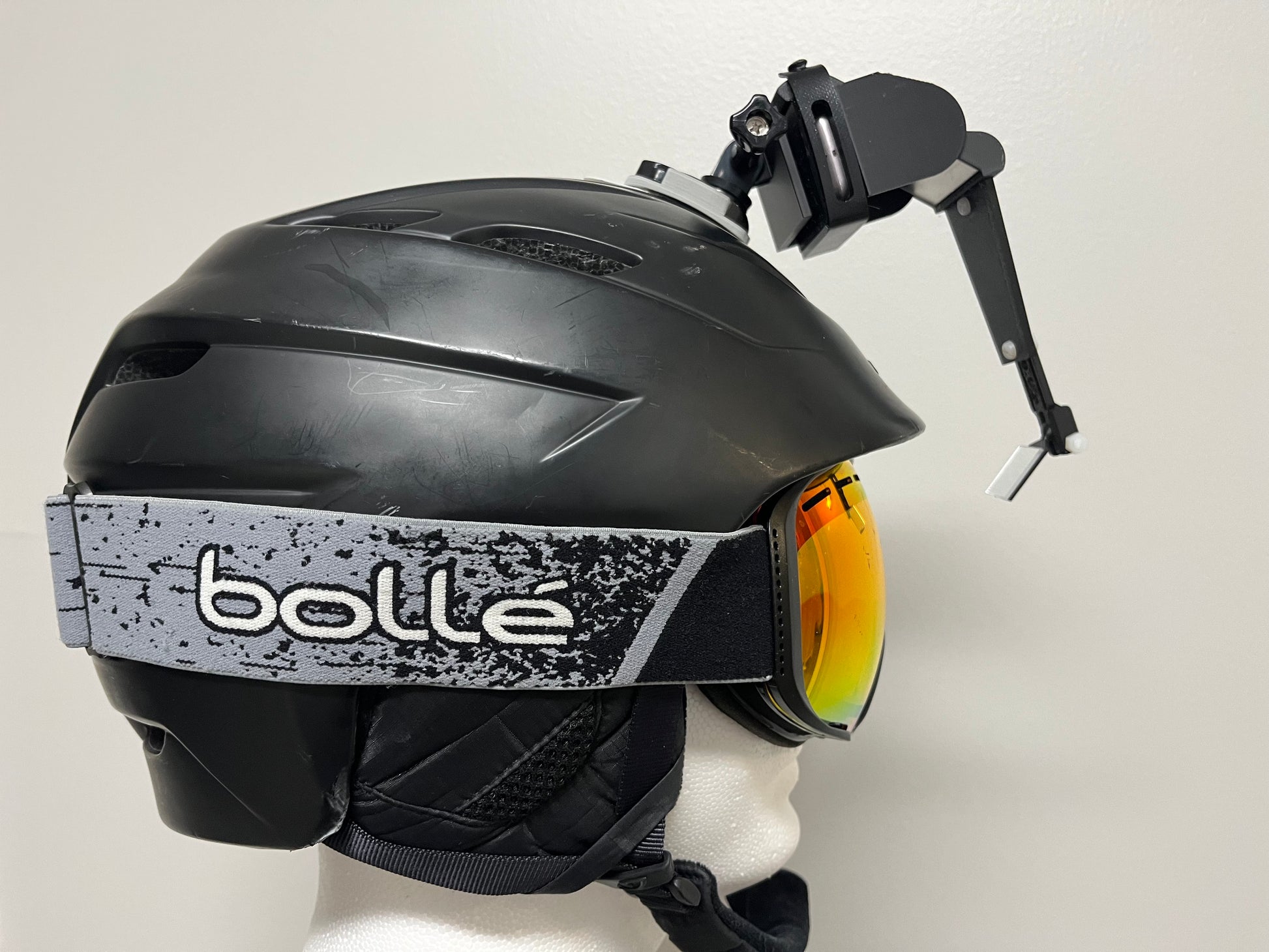 An adapter that mounts your smart watch onto a snow goggle or a helmet, and converts it into a heads-up display with a dual-mirror optical setup.